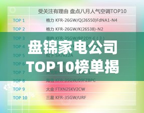 盘锦,这片富饶的土地孕育出了众多优秀的家电企业,在这篇文章中,我们将为您揭晓盘锦家电公司排名前十的名单,带您走进这些企业的世界,了解他们的优势与特色。