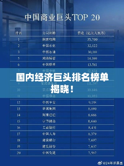 国内经济巨头排名榜单揭晓!