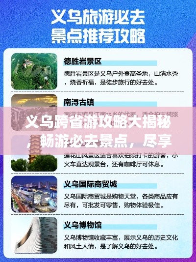 即为义乌跨省旅游攻略,希望能为你的旅行提供有益的参考,在旅行中,请注意安全,遵守当地法规,尊重当地文化,享受美好的旅行时光。