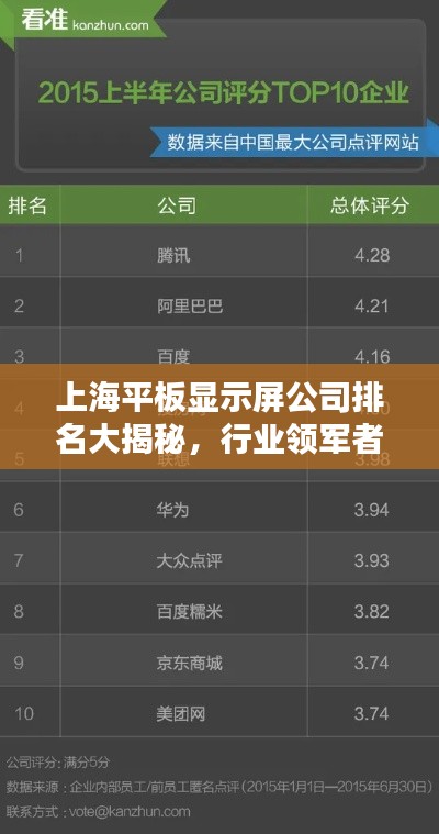 随着科技的飞速发展,平板显示屏已成为电子产品中不可或缺的核心部件,作为中国的经济、金融、贸易和航运中心,上海在这一领域的发展尤为突出,本文将为您详细介绍上海平板显示屏公司的排名,带您了解这些引领行业潮流的领先企业。