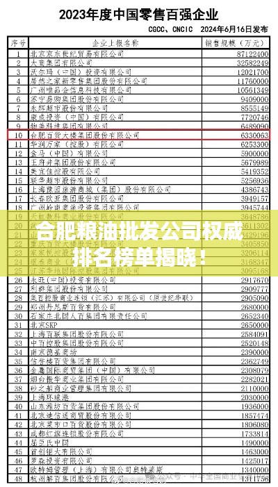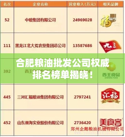 合肥,作为安徽省的省会城市,其经济发展迅速,商贸繁荣,粮油批发作为重要的民生行业,在合肥具有举足轻重的地位,本文将为您介绍合肥粮油批发公司的排名,以便您了解这些企业的实力与影响力。