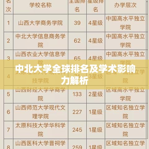 随着全球高等教育的发展,大学的世界排名成为了衡量一所大学综合实力和国际影响力的重要指标之一,本文将聚焦于中北大学的世界排名,探讨其在全球高等教育体系中的地位和影响力。