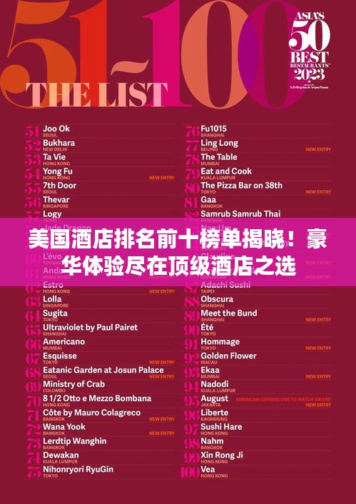 美国酒店排名前十榜单揭晓!豪华体验尽在顶级酒店之选