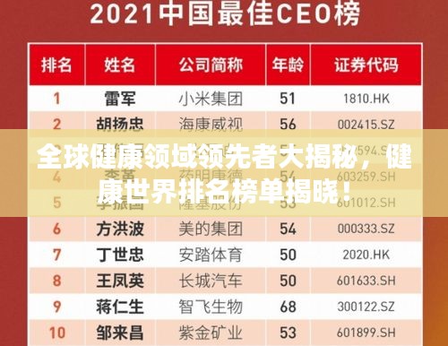 随着全球化和人们生活方式的改变,健康问题越来越受到人们的关注,健康世界排名,作为一种衡量各国健康水平的重要指标,反映了全球范围内健康领域的竞争态势,本文将围绕健康世界排名,探讨全球健康领域的现状和未来发展趋势。