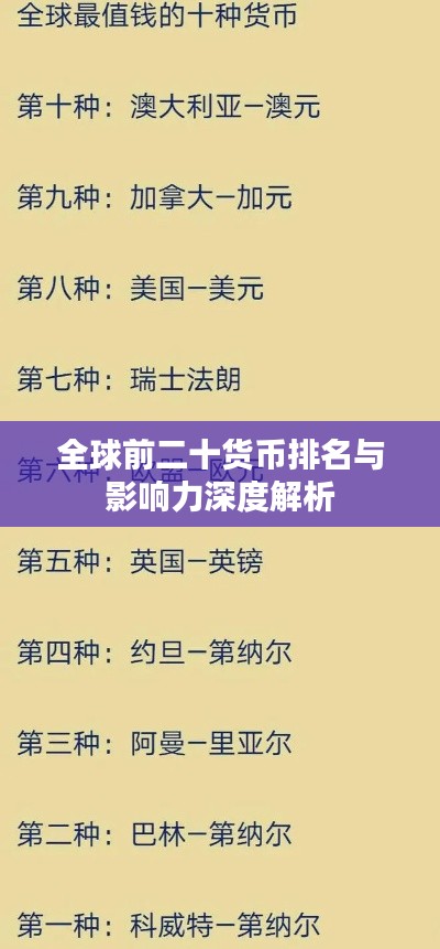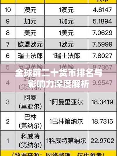 全球前二十货币排名与影响力深度解析
