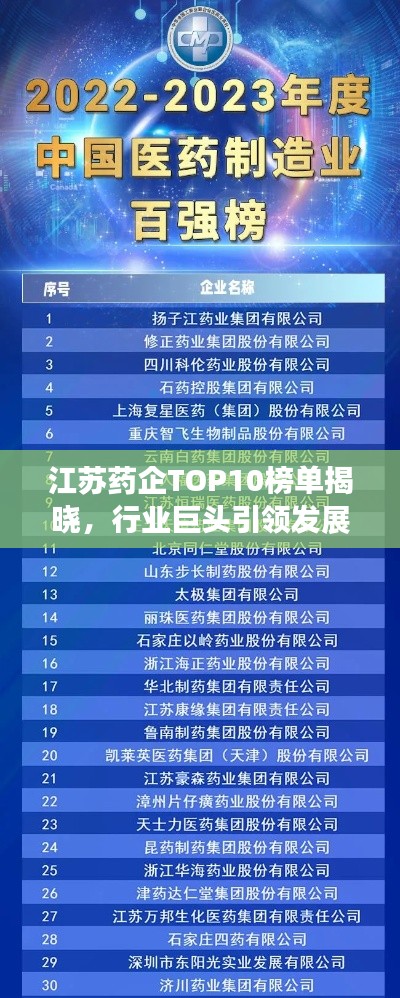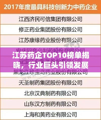 江苏药企TOP10榜单揭晓,行业巨头引领发展风向标