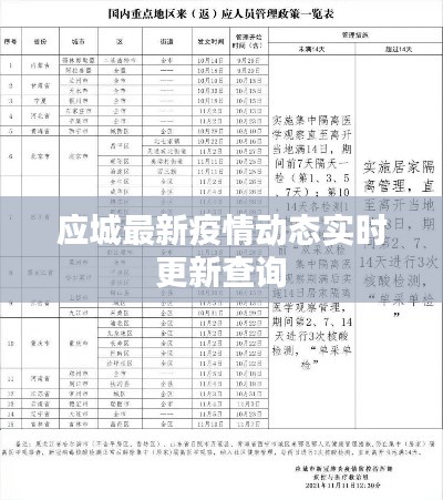 随着全球疫情形势的不断变化,人们对于疫情信息的关注日益加强,作为重要的疫情信息发布渠道之一,今日应城的最新疫情消息引起了广泛关注,本文将对应城今日的疫情消息进行全面查询并简要介绍。