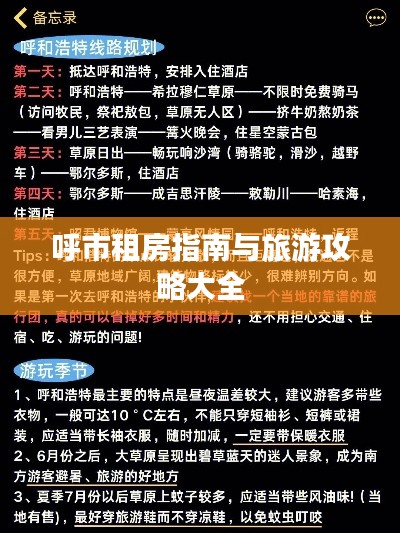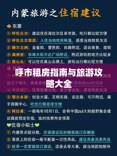 呼和浩特,这座美丽的城市以其独特的文化魅力吸引着无数游客,对于来到呼市的游客,租房攻略与旅游指南是必备的参考资料,本文将为你提供呼市租房的攻略以及旅游指南,帮助你更好地在这座城市里生活与游玩。