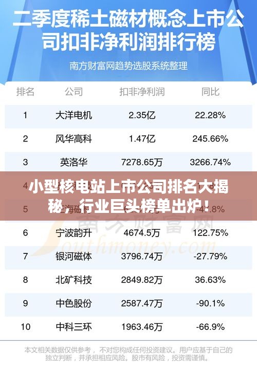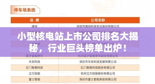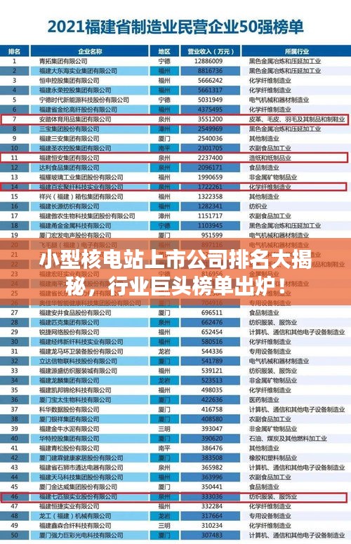 随着全球能源结构的转变与环保意识的提升,核能作为清洁、高效的能源形式之一,正受到越来越多国家的重视,在众多核能企业中,小型核电站上市公司以其先进的技术、稳定的运营及良好的市场前景备受关注,本文将对当前市场上的小型核电站上市公司进行排名介绍。