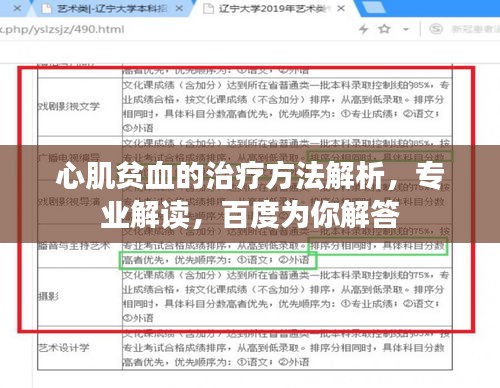心肌贫血的治疗方法解析,专业解读,百度为你解答