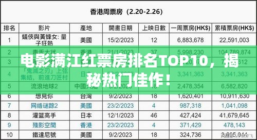 随着电影市场的繁荣,越来越多的优秀电影作品涌现出来,吸引了广大观众的眼球,电影《满江红》以其独特的题材和精彩的演绎赢得了众多观众的喜爱,成为了票房排名前十名的佳作之一,本文将对电影《满江红》的票房排名前十名进行详细介绍。