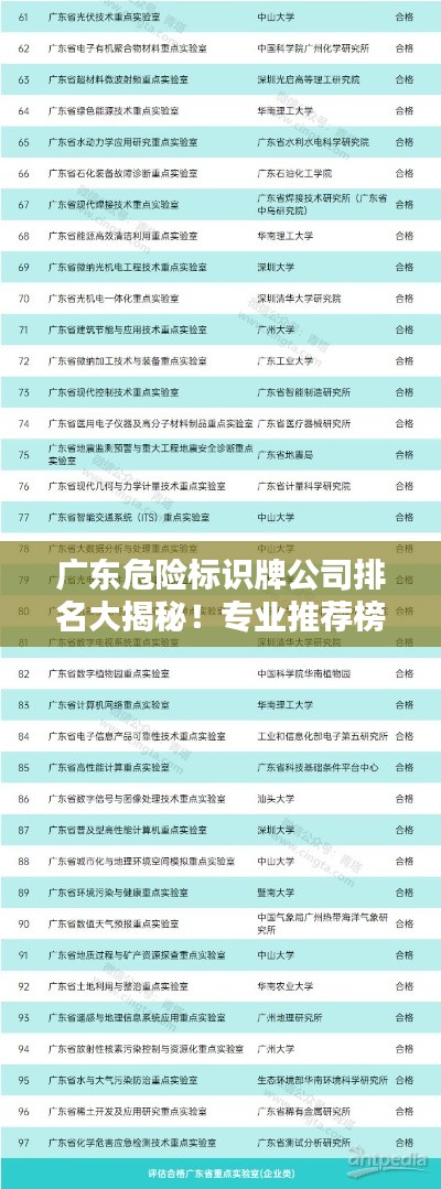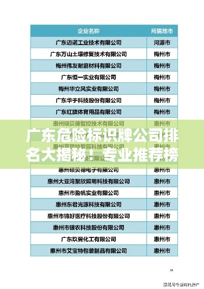 随着社会的不断发展和进步,安全意识的提高已经成为人们普遍关注的焦点,在各行各业中,为了保障人员安全和财产安全,危险标识牌的作用日益凸显,本文将对广东地区的危险标识牌公司进行排名介绍,以便为广大用户提供参考。