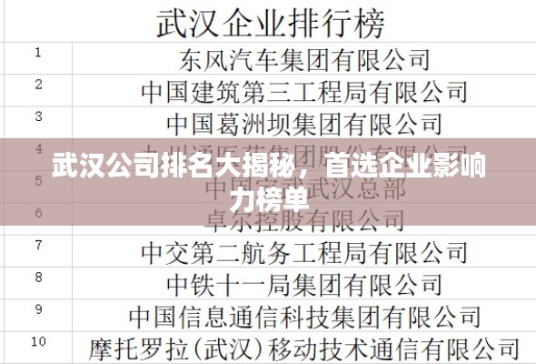 武汉公司排名大揭秘,首选企业影响力榜单