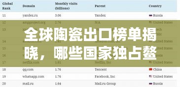陶瓷,作为人类文明的瑰宝,自古以来就以其独特的艺术魅力和实用价值深受世界各地人民的喜爱,随着全球化的进程,陶瓷的出口贸易也日渐繁荣,本文将探讨当前世界陶瓷出口排名的情况,揭示哪些国家在这一领域取得了显著的成绩。