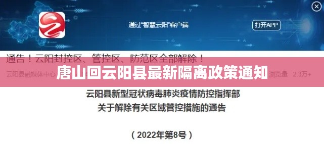 唐山回云阳县最新隔离政策通知