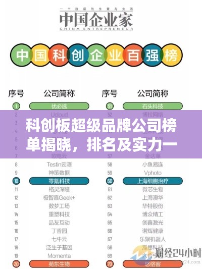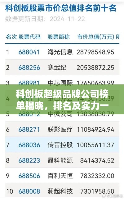 随着科技的不断进步和创新,科创板作为中国的科技创新企业孵化地,已经涌现出了一批具有强大品牌影响力的公司,这些超级品牌公司在各自的领域内取得了卓越的成就,成为了行业内的佼佼者,本文将为您揭示科创板超级品牌公司的排名。
