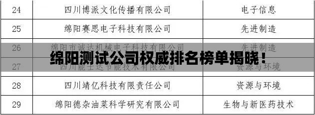 绵阳测试公司权威排名榜单揭晓!