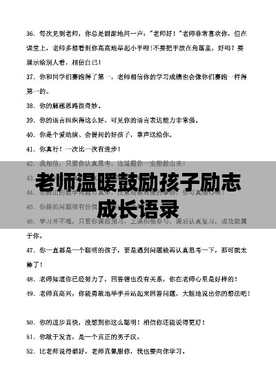 每个孩子都是一颗独特的种子,需要阳光、雨露和关怀,才能茁壮成长,作为孩子的引导者,老师的话语对于孩子们的成长具有深远的影响,以下是一些老师哄孩子励志语录,希望能为孩子们的成长带来正能量。