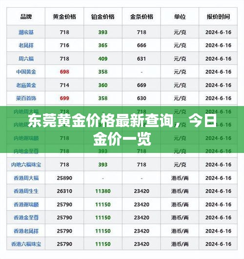 黄金作为一种贵金属,一直以来都是人们关注的焦点,随着市场的波动,黄金价格时常有所变动,对于想要了解黄金价格的人来说,掌握最新、最准确的信息至关重要,本文将为您介绍黄金今日东莞金价查询最新的相关信息。