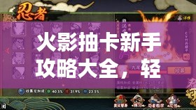 对于刚刚接触火影忍者卡牌游戏的玩家来说,掌握抽卡技巧是非常关键的,本文将为大家带来一份最新的火影抽卡新手攻略,帮助大家更好地掌握游戏,提高抽卡成功率。