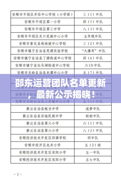 邵东运营团队名单的最新公示引起了广大市民和社会各界的关注,作为邵东地区的重要运营团队,其成员名单的变动自然备受瞩目,本文将围绕这一主题,介绍邵东运营团队的相关情况。