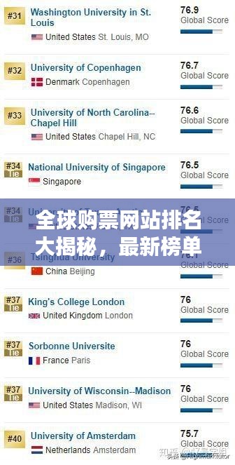是全球买票网站排名的最新情况,这些票务网站凭借丰富的资源、优质的服务和便捷的用户体验,赢得了广大用户的青睐,随着全球旅游业的不断发展,这些票务网站将继续发挥重要作用,为人们提供更加便捷、高效的购票服务。