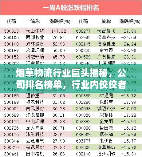 烟草物流行业巨头揭秘,公司排名榜单,行业内佼佼者一览无余