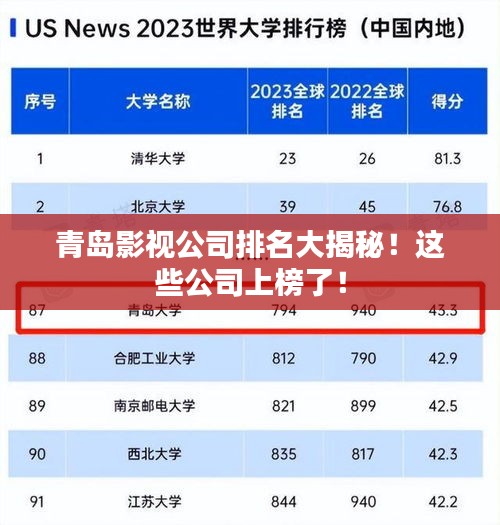 青岛,这座美丽的海滨城市,不仅以其独特的自然风光和多元文化吸引着人们的目光,同时也因其繁荣的影视产业而备受瞩目,众多影视公司在青岛蓬勃发展,为中国的影视产业注入了新的活力,本文将为您详细介绍青岛影视公司的排名及相关情况。