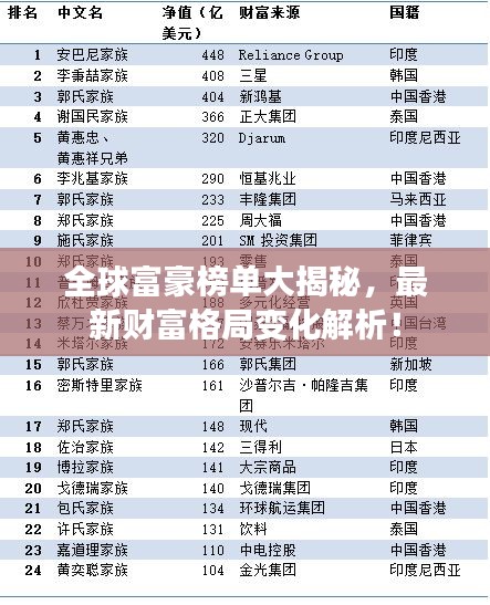 全球富豪榜单大揭秘,最新财富格局变化解析!