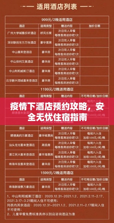 随着新冠疫情的持续发展,我们的生活方式也在不断地适应变化,旅游和商务出行中,选择酒店成为了我们关注的重点,如何在疫情期间预约酒店并保证自身安全?本文将为你提供最新的疫情预约酒店攻略,助你安全住宿无忧。