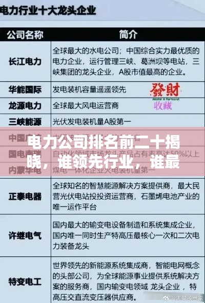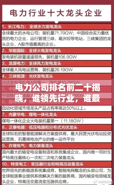 电力公司排名前二十揭晓,谁领先行业,谁最具潜力?