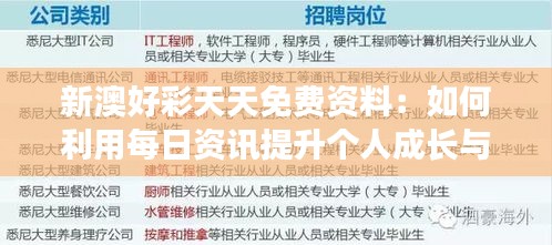 新澳好彩天天免费资料:如何利用每日资讯提升个人成长与职场竞争力