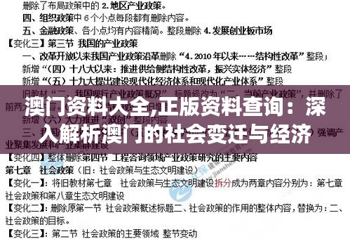 澳门资料大全,正版资料查询:深入解析澳门的社会变迁与经济发展趋势