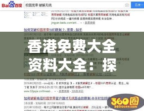 "香港免费大全资料大全"提供了多种途径,方便人们获取这些资源和信息。