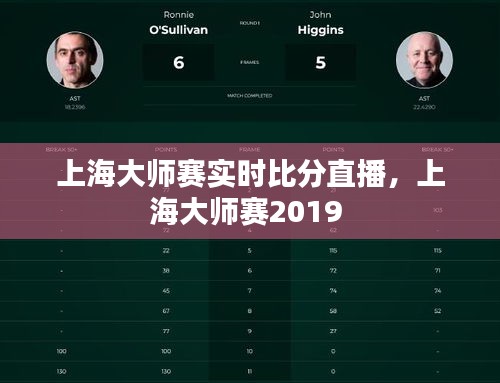 上海大师赛实时比分直播,上海大师赛2019