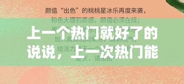 在这个信息爆炸的时代,热点事件犹如潮水般涌来,让人目不暇接。然而,有一个现象却让人深思,那就是“上一个热门就好了”的心态。这种心态看似简单,却蕴含着人们对流行文化的深刻理解和独特见解。