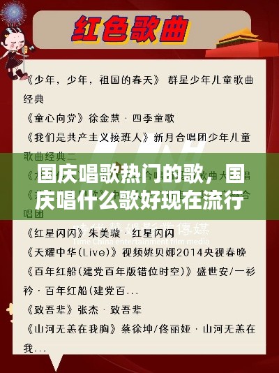 在国庆节的歌单中,经典老歌总是占据着重要的位置。这些歌曲,如《歌唱祖国》、《我和我的祖国》等,承载着几代人的记忆和情感。在国庆节期间,许多歌手和音乐团体会重新演绎这些经典之作,让这些老歌在新时代焕发出新的生命力。