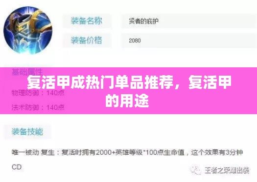 复活甲成热门单品推荐,复活甲的用途