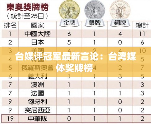 台媒评冠军最新言论:台湾媒体奖牌榜
