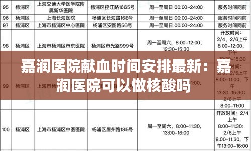 嘉润医院献血时间安排最新:嘉润医院可以做核酸吗