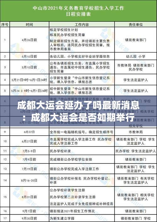 成都大运会,即第31届世界大学生夏季运动会,原定于2023年在成都举行。然而,由于全球新冠疫情的影响,该赛事的举办情况一直备受关注。近期,关于成都大运会是否延办的消息引起了广泛关注。