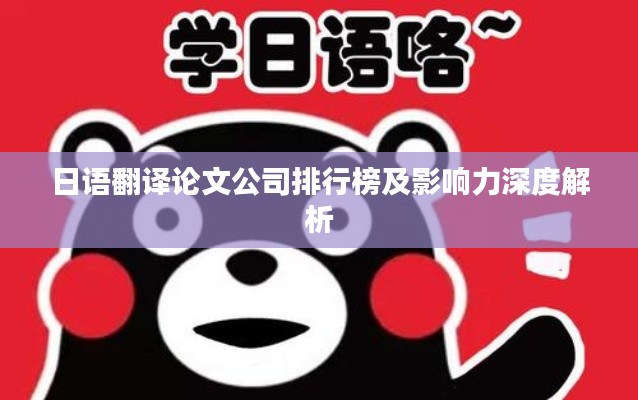 随着全球化的推进,语言服务行业蓬勃发展,其中尤以翻译服务需求最为旺盛,在众多语言服务领域中,日语翻译论文公司因其专业性和学术性而备受关注,本文将探讨日语翻译论文公司的排名及其影响力,以期对行业内人士提供有价值的参考。