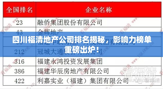 四川福清地产公司排名揭秘,影响力榜单重磅出炉!