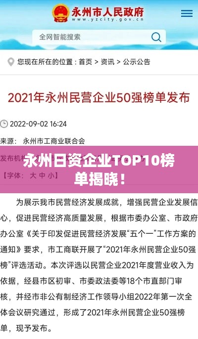 永州日资企业TOP10榜单揭晓!