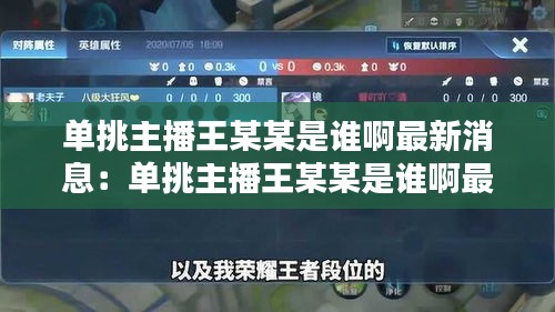 单挑主播王某某,近年来在直播行业崭露头角,以其独特的直播风格和精彩的单挑游戏技巧赢得了众多粉丝的喜爱。那么,这位单挑主播王某某究竟是谁?他又有哪些令人瞩目的成就呢?下面我们就来一探究竟。
