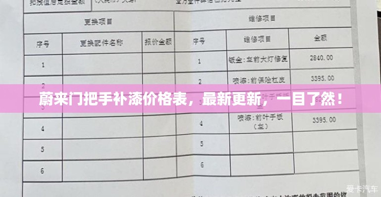 蔚来门把手补漆价格表,最新更新,一目了然!