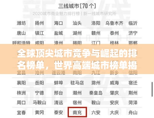 随着全球经济一体化的深入发展,城市间的竞争日趋激烈,特别是在高端领域,各大城市都在寻求转型与突破,以提升自己的国际竞争力,本文将围绕“世界高端城市排名”这一主题,探讨全球顶尖城市的竞争态势及其背后的驱动力。