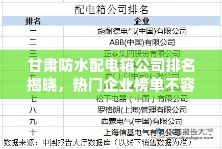 甘肃防水配电箱公司排名揭晓,热门企业榜单不容错过!