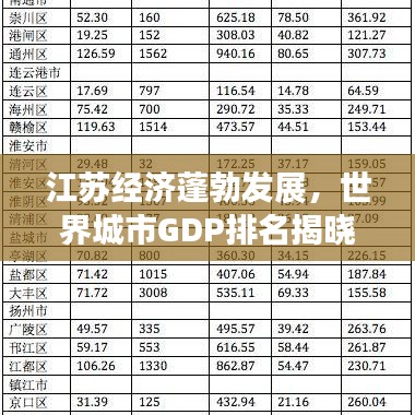 江苏,这个位于中国东部的省份,近年来在经济领域取得了举世瞩目的成就,随着全球城市GDP排名的更新,江苏的城市在全球范围内的经济地位也日益凸显,本文将探讨江苏在世界城市GDP排名中的表现,以及其背后的经济发展动力。